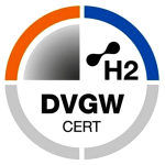 Tento těsnicí materiál byl úspěšně testován a certifikován pro použití na vodík v rámci certifikačního programu DVGW ZP 5123. Tato certifikace zajišťuje vhodnost našich produktů pro aplikace s obsahem vodíku až 100 objemových %. ![]()